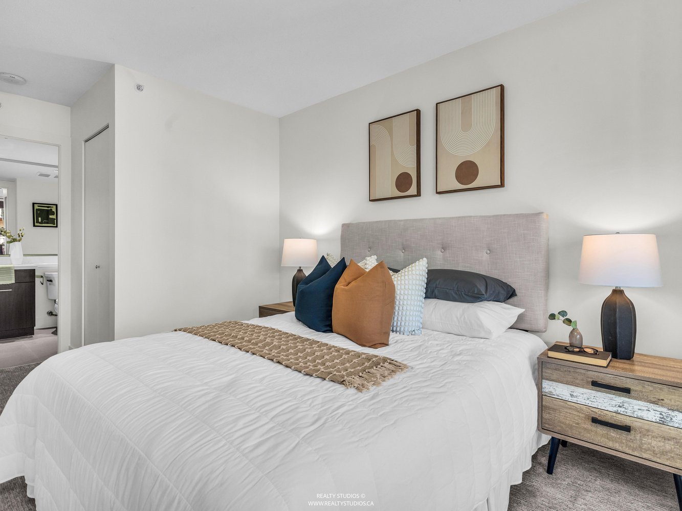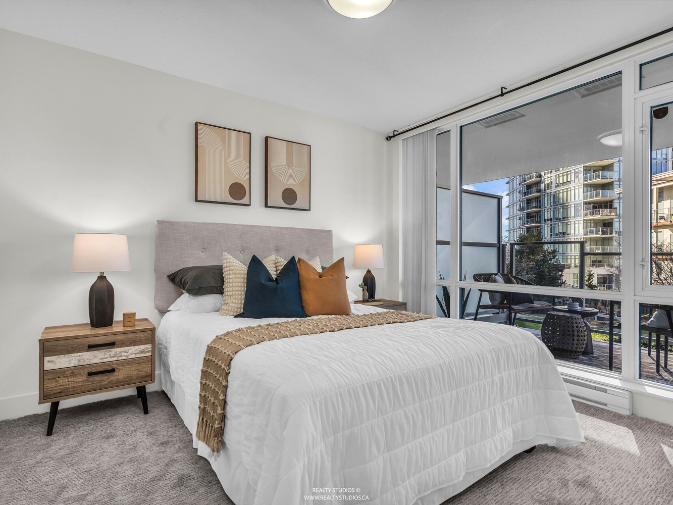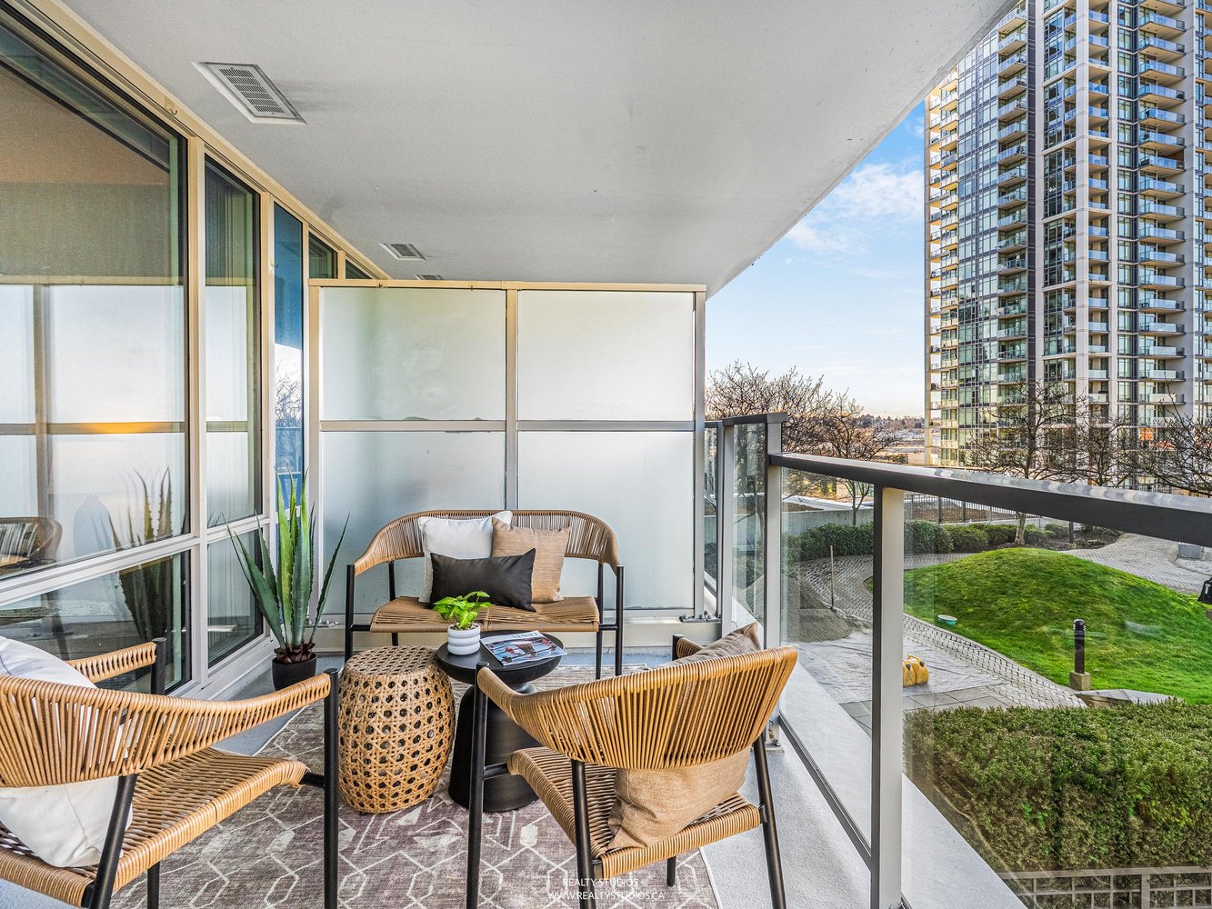 RARELY available is this bright, Northwest facing 2 bdrm & 2 bathrm suite at AVIARA by Ledmac. The extra large, end to end balcony overlooks the peaceful and well-maintained ROOF-TOP Garden and play area giving you a sense of calm privacy in an urban centre. Efficient floor plan with newer FULL SIZE APPLIANCES, updated flooring & paint. Amenities include hotel-like GUEST SUITE, exercise rm, and rec rm with pool table & wet bar. Skytrain, shopping, parks are no more than a few blocks away. The BEST location with both CONVENIENCE & QUIET. 1 parking stall and 1 storage locker included. OPEN Sat/ Sun 2-4pm